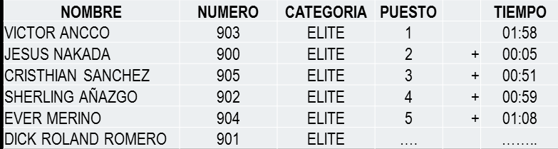 La categoría Elite fueron los más adaptados al circuito, a paso continuo y con gran manejo de los cambios de sus bicicletas, ganaban más kilómetros y se acercaban a la penúltima estación de la competencia, San Pedro de Cumbaza.