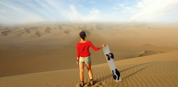 El Sandboard es un deporte de aventura que consiste básicamente en descender dunas o montañas de arena en una tabla diseñada especialmente para ello. Se cataloga como un deporte extremo por los niveles de adrenalina que alcanzan quienes lo practican.
