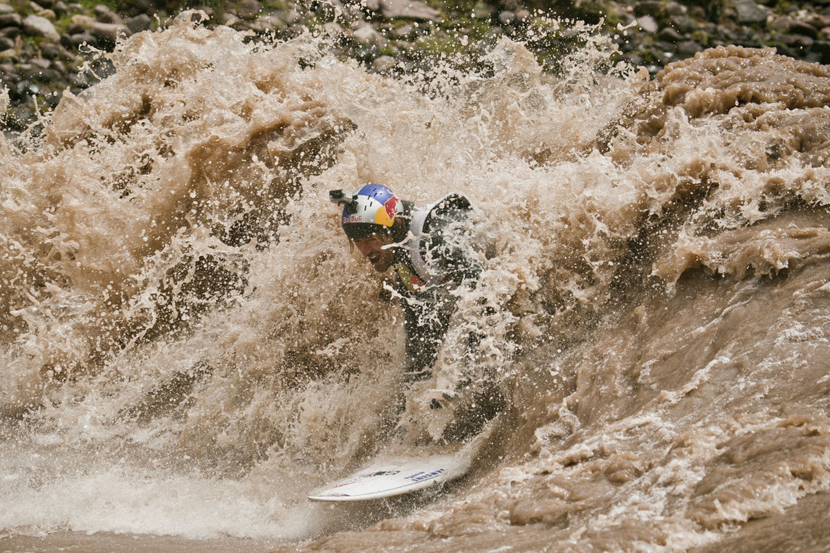 Además de competir, a Gabriel le gusta ir más allá, aceptando retos ajenos a las principales competiciones. Hace un tiempo decidió surfear una ola de río, en el río Vilcanota en los Andes. Y actualmente se ha orientado en darle con todo a la Ola Grande como la temible ola de Pico Alto.