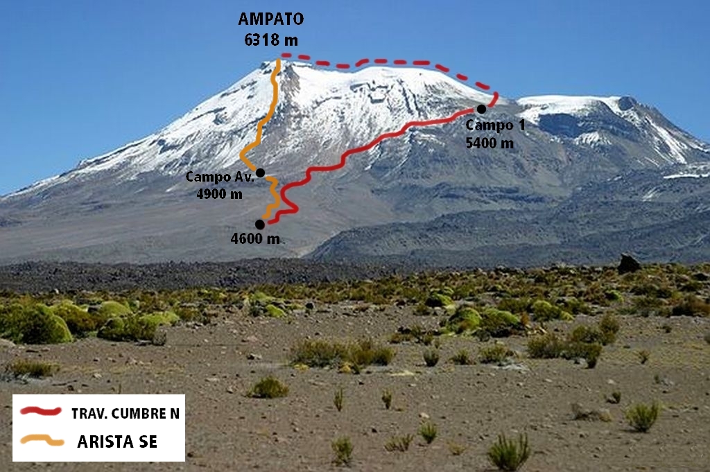 - - Lado este, ruta normal, vertiente este, travesía por la cumbre norte por ascenso 7 horas aprox.