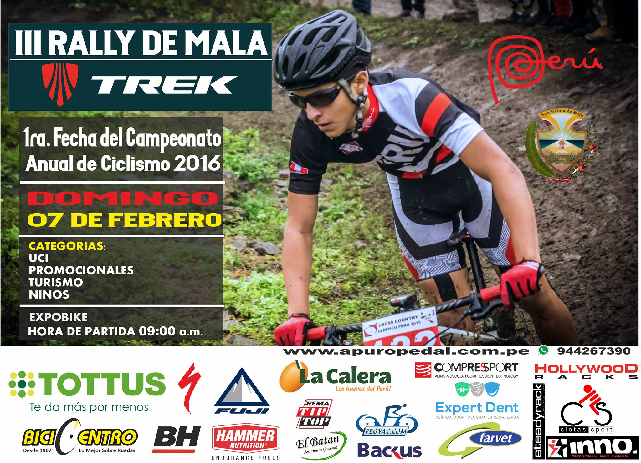 4. Campeonato Anual de Ciclismo MontañaDesde el 2011, A Puro Pedal impulsa el ciclismo en el Peru, por tal viene realizando este evento que convoca a gran número de ciclistas a lo largo del desarrollo de sus fechas durante todo el año. Se realiza con el propósito de masificar el ciclismo en Lima, presenta 6 fechas y dos modalidades. Actualmente la competencia se realiza en Olleros, Cieneguilla, Mala, Lurin, Pachacamac, y este 2016 por primera vez, la competencia sale de Lima en dirección a Chincha.