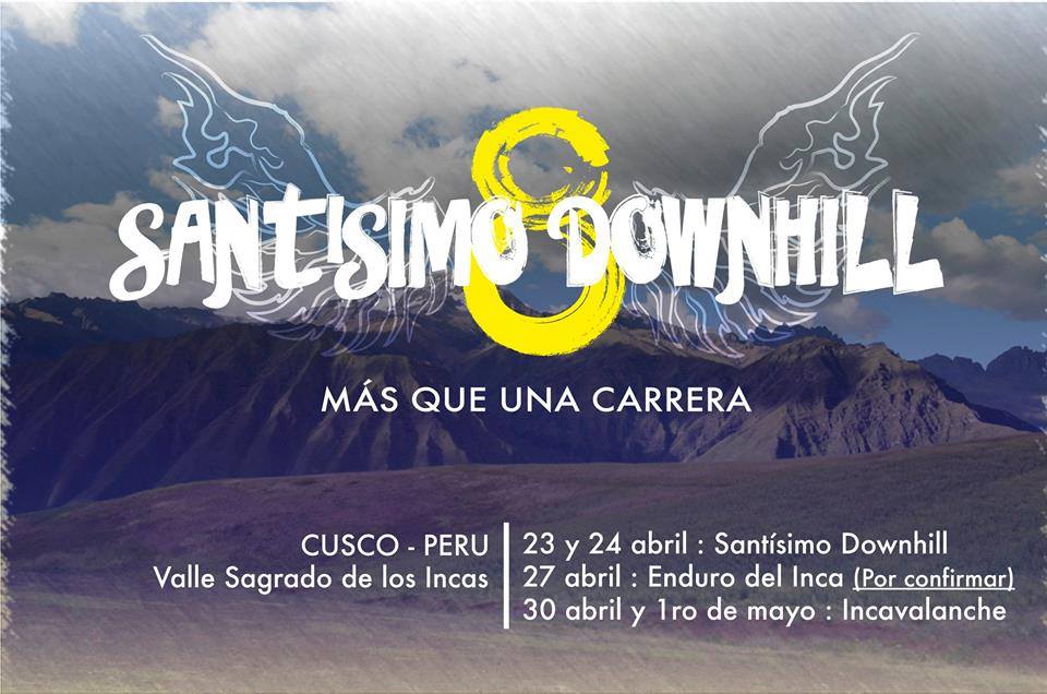 Fecha del Evento: 23 - 24 Abril Lugar: Huayllabamba, Cusco Modalidad: Downhill Website: http://www.santisimodh.com/