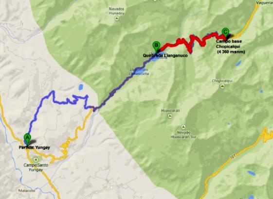 Ruta para llegar al Nevado Chopicalqui: